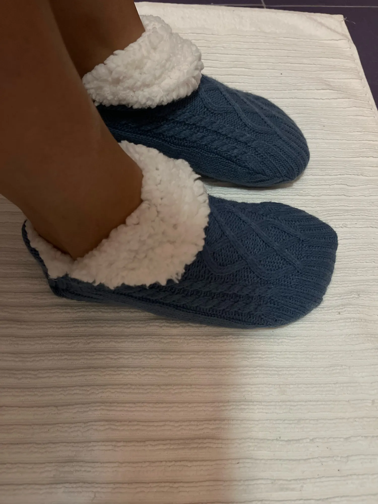 Stay warm and cozy this winter with our (New) Men's & Women's Non-Slip Fuzzy Sherpa Slipper Socks. The plush sherpa inner lining provides ultimate comfort while the non-slip grippers keep you safe on slippery floors. With their super warm and super soft design, these socks are a must-have for any chilly day. You'll never want to take them off!