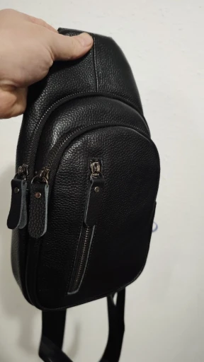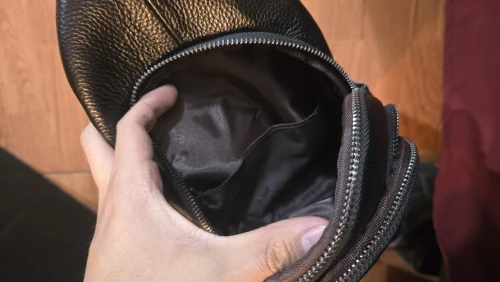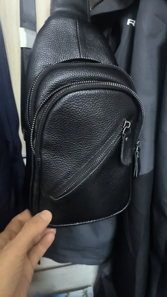 This small sling bag is perfect for both men and women. It is made of genuine cowhide leather and has a medium hardness. The bag features a polyester lining and includes plenty of room for your essentials. The stylish stitching and contrast color make it a popular choice among customers.
